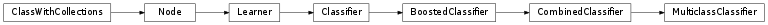 __call__(ds)clone()Create full copy of the classifier. generate(ds)Yield processing results. get_postproc()Returns the post-processing node or None. get_sensitivity_analyzer(\*\*kwargs)Return an appropriate SensitivityAnalyzer get_space()Query the processing space name of this node. is_trained([dataset])Either classifier was already trained. predict(obj, data, \*args, \*\*kwargs)repredict(obj, data, \*args, \*\*kwargs)reset()retrain(dataset, \*\*kwargs)Helper to avoid check if data was changed actually changed set_postproc(node)Assigns a post-processing node set_space(name)Set the processing space name of this node. summary()Provide summary for the CombinedClassifier.train(ds)The default implementation calls _pretrain(),_train(), and finally_posttrain().untrain()Reverts changes in the state of this node caused by previous training